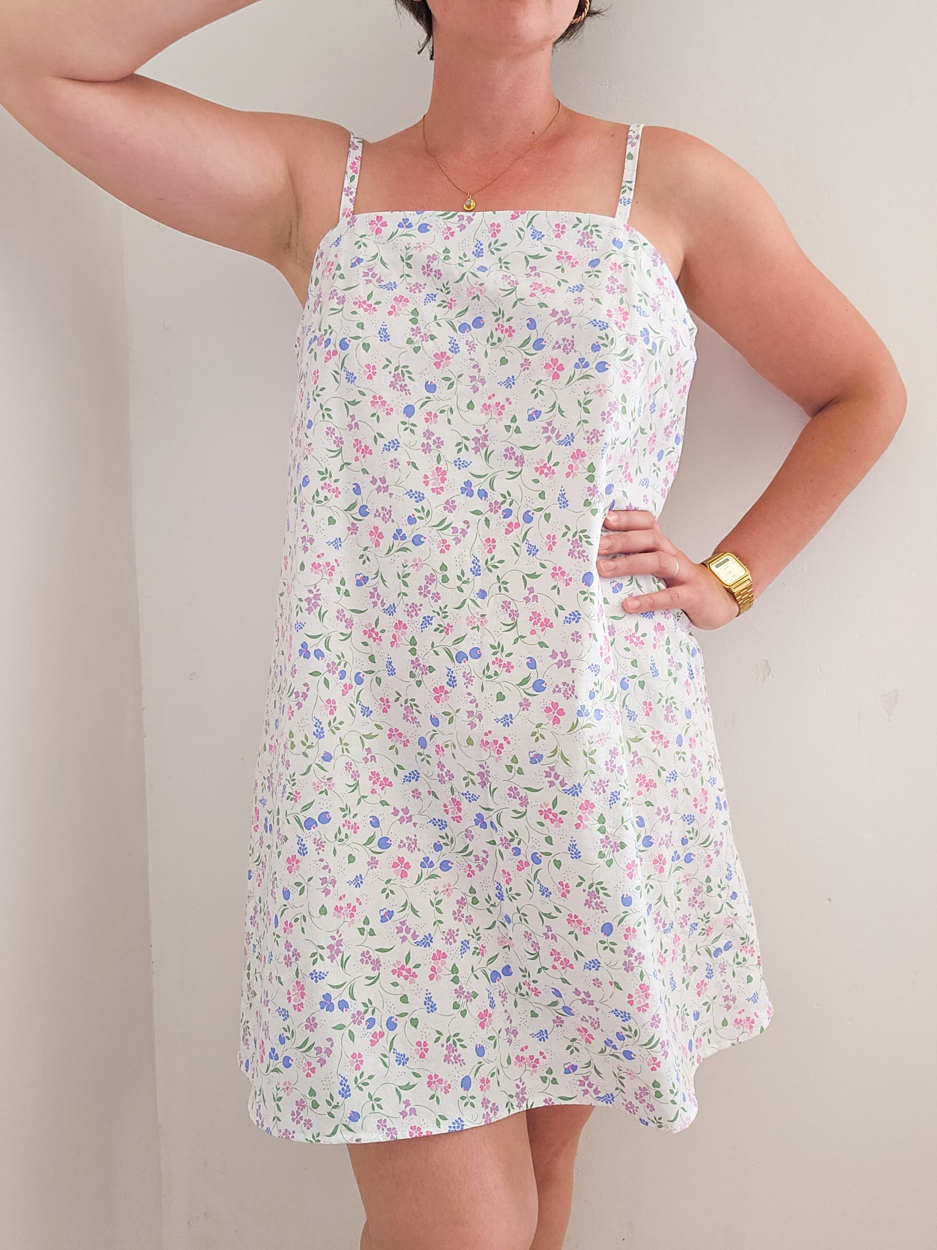 Cette robe à bretelles au style trapèze est l’alliée parfaite des journées ensoleillées. Sa coupe fluide et légère te laisse libre de tes mouvements tout en apportant une silhouette flatteuse et féminine, quelle que soit ta morphologie. À porter à même la peau ou en layering avec un tee-shirt blanc et des baskets : le style reste cool, fleuri et affirmé.